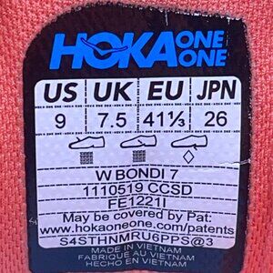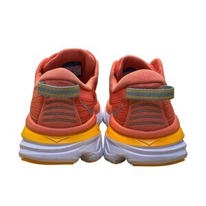 Hoka Women’s Coral & Yellow Mesh Bondi 7 Cushioned Running Shoes Trainers Size 9