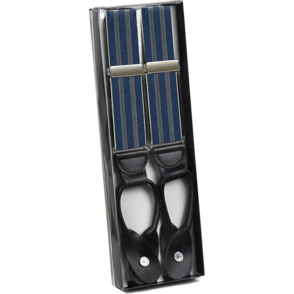 Hold’Em 1 ¼ Fancy Stripe and Solid Suspenders for Men Leather Button-Shadow Navy