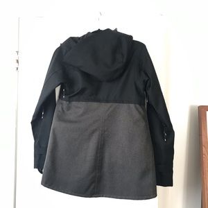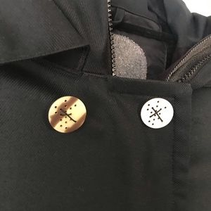 Lightly used for a season, there is some pilling under the left sleeve but not the right. Otherwise in super great condition and very warm! Tortoise shell detail buttons. The gray tone is a beautiful herringbone pattern!