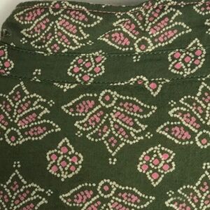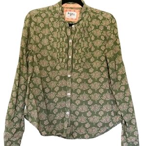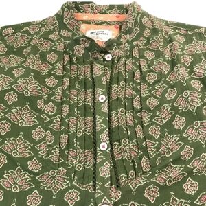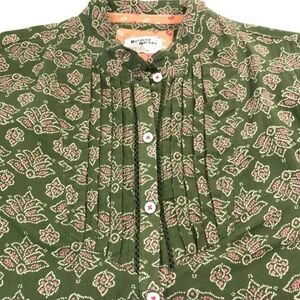 Holding Horses Anthropologie Boho Green Floral Pleated Front Button Shirt