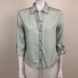 Holding Horses Anthropologie Womens Size XS Laced Chambray Button Down Shirt