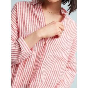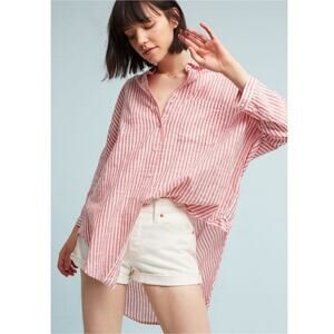 Holding Horses Anthropologie red and white striped cotton oversized high low top with 3/4 sleeves