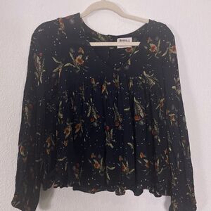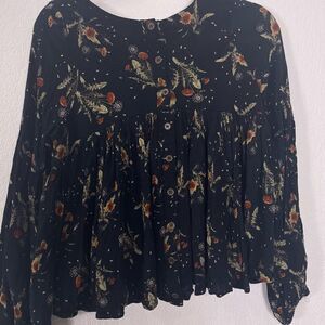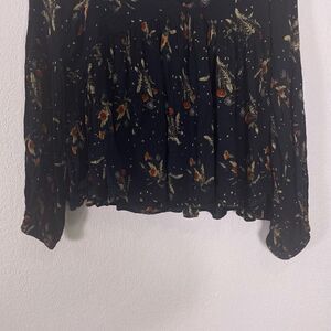 Holding Horses Anthropologie Black with Orange Floral Print Flowy Long Sleeve Bl