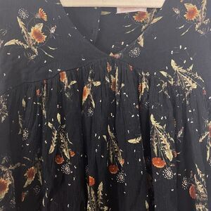 Great pre-owned condition Holding Horses Anthropologie Black with Orange Floral Print Flowy Long Sleeve Blouse Top