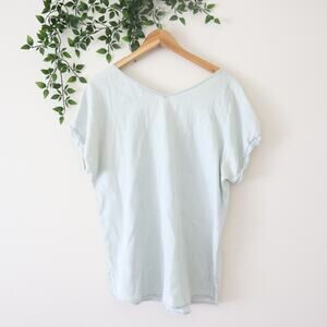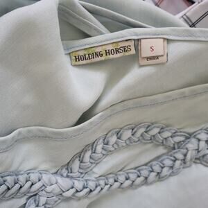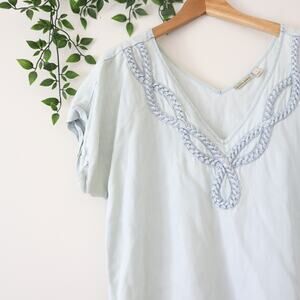Holding Horses Anthropologie Blue V Neck Braided Trim Lyocell Top Size Small