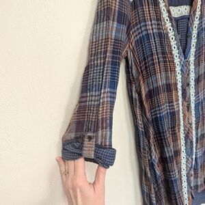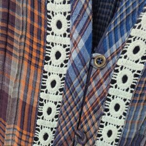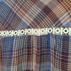 Holding Horses Anthropologie Navy & Orange Plaid Lace Trim High Low Dress XS