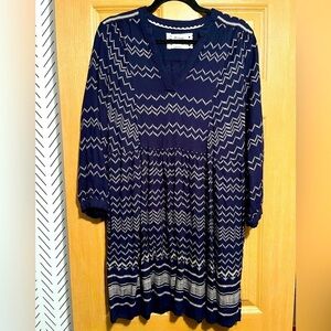 Holding Horses Anthropologie Navy Ric Rac Mini Long Sleeve Zig Zag Dress Medium