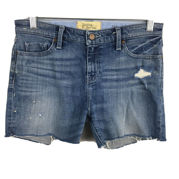 Holding Horses Anthropologie Shorts Womens Sz 26 Blue Mid Rise Cut Off Denim