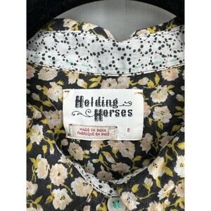 Holding Horses Anthropoogie Top Womens 8 Black Floral Yellow Button Boho Garden