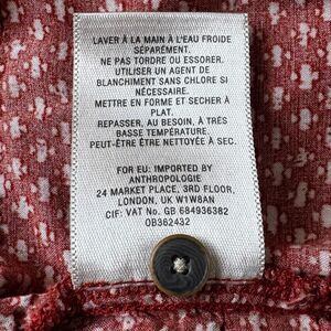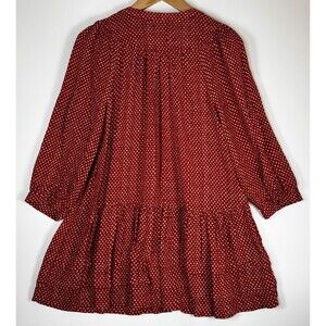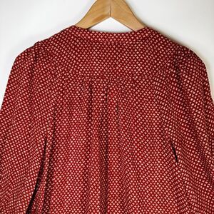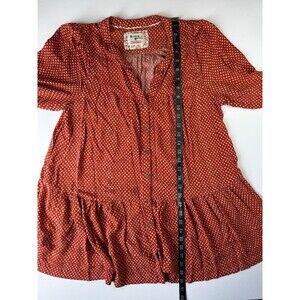 Brand: Holding Horses (Anthropologie label) Size: Womens Small Color: Rust red with mini diamond print Style: Tunic top / peasant blouse Features: Button front, 3/4 sleeves, tiered hem, relaxed fit Fabric: 100% rayon lightweight and flowy Condition: Excellent pre-owned, no flaws