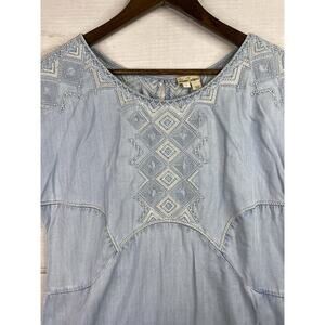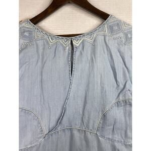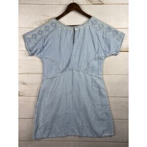 Holding Horses Anthropologie Womens Dress S Blue Denim Embroidered Chambray Boho