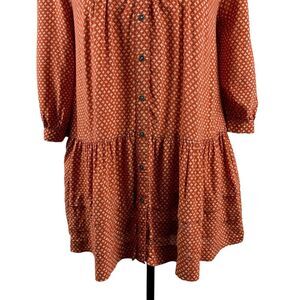 Holding Horses Anthropologie Women's Tunic Top XSP Orange Tiered Button Front