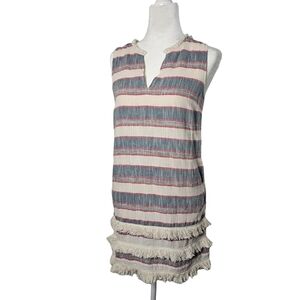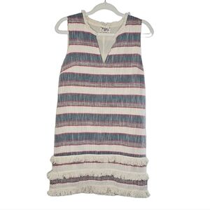 Holding Horses Anthropologies Cream & blue & red stripes w/ fringe v-neck size 6. Zipper closure.