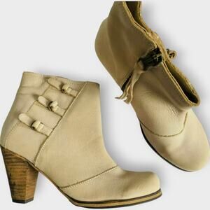 Holding Horses Buckled Triad Booties Block Heel Ivory Leather Boots Size 36 6