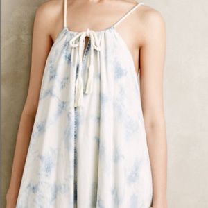 Cotton chambray swing dress by Holding Horses, an Anthropologie brand. Has side pockets (love!) and tie front. Pullover styling. Machine wash. Falls 35" from shoulder.