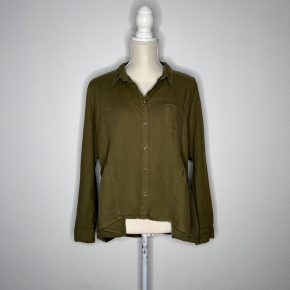 Style: Button-down shirt · Collared neckline · Relaxed cut