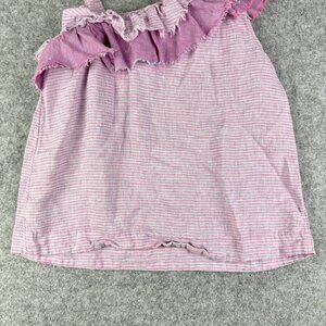 Holding Horses Linen Top Womens S Purple Striped Ruffle Asymmetrical Bohemian