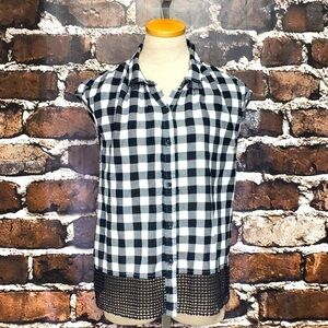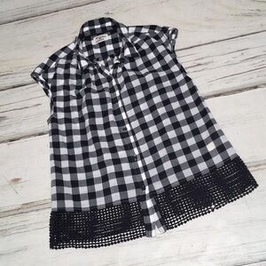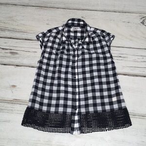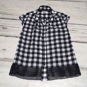 Anthropologie Holding Horses Black White Checkered Plaid Crochet Trim
