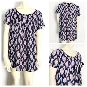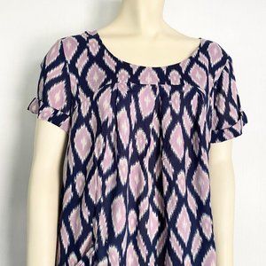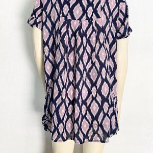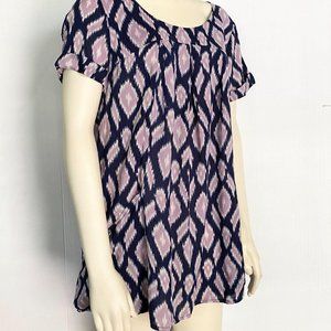 Anthropologie Holding Horses side pockets tunic top in navy/lilac print, soft rayon, size S small.