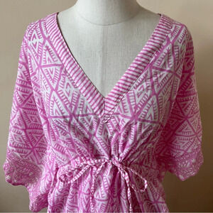 Holicow block print tassel trim caftan beach cover up 17857
