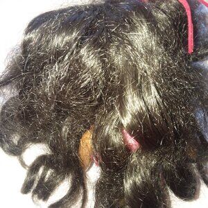 1993 Holiday Barbie (African-American). Earrings are intact but ring is missing. This is not the original dress and her hair is untidy as notes in the picture above.