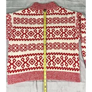 Holiday Après Ski Sweater Womens L New Day Red Cream Sparkle Fair Isle Chunky