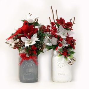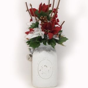 Holiday Ball Mason Jar Floral Arrangement Centerpiece, Poinsettia Flowers