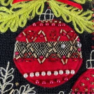 Holiday Black Sweater Festive Ornaments Christmas Sweater Vintage Large