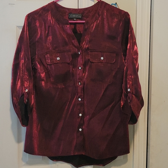 Deep red shimmer blouse. Runs a wee bit smaller than a true medium
