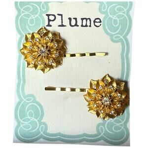 • Set of two gold floral bobby pins