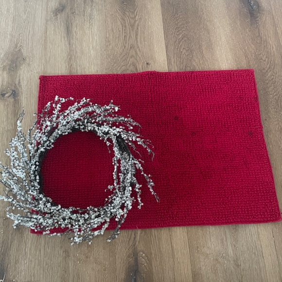 Holiday Bundle: 9" Vintage Wreath and Red Plush Cotton Mat