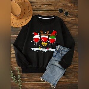 Holiday Cheer Sweatshirt!🍷🍷 Black holiday sweatshirt. Soft & warm. Front has the holiday cheer pic & back is plain. True to size. 100% poly