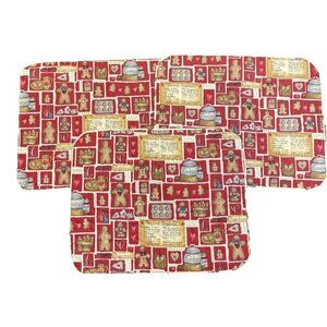 Holiday Christmas Gingerbread Reversible Hand Made Placemats Set Of 3 NEW
