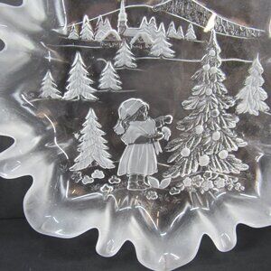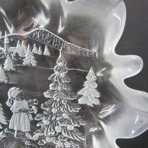 Mikasa Holiday Christmas Story Etched Glass Candy Dish Clear and Frosted 1.5"x9.75"