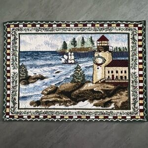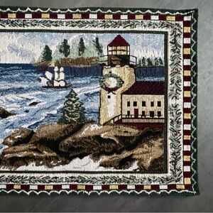 Holiday Christmas Tapestry Placemats Lighthouse Winter Sea Scene 17x12 Set of 4