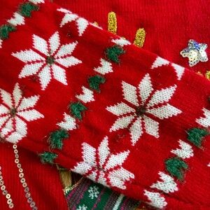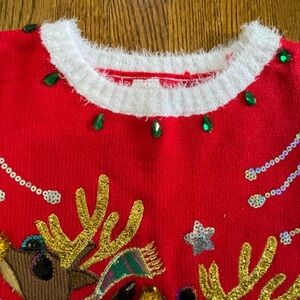 This is a ladies adult small holiday sweater. Go ahead and get ahead of the game and make your purchase! There is a small pull on the back of the sweater but it will still win you an ugly sweater contest!