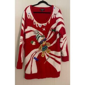 Holiday Christmas Ugly Sweater Dress Gingerbread Man Candy Cane Peppermint XXL