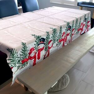 Holiday Cloth Table Cloth Winter Scene Snowmen 83" x 30" Rectangular
