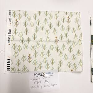 This is a lot of Holiday Fabric. There are 4 pieces. 2 Fat 1/4s, 1 Fat 1/8 and 1 42x19". There is 2015 Cotton and Steel from Japan, Henry Glass, Rashida Coleman Hale and Heartland. There Gnomes, Christmas Trees, and Tinsel.