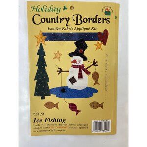 Holiday Country Borders Iron-On Fabric Appliqué Kit "Ice Fishing" Snowman Tree