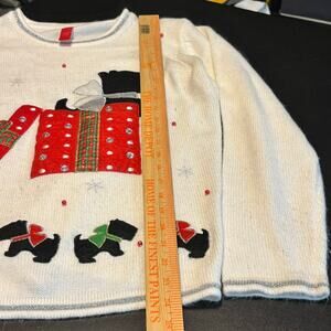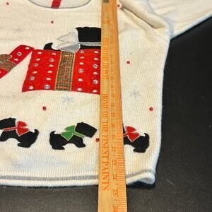 Holiday Dog Gift Box Sweater L 12-14 White Festive Scottie Dogs Rhinestones