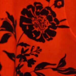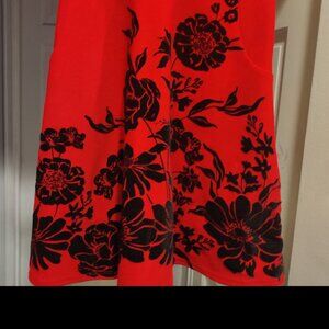 Elegant sleeveless dress, red with black velvet flowers, and pockets. Zippered in the back. Size US 10 Girls. Super cute for the holidays or other special outings.