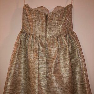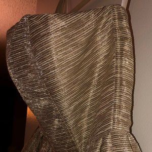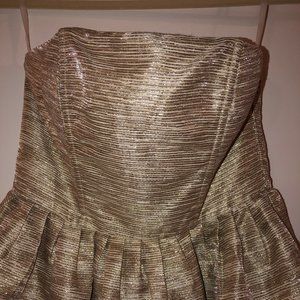 Super cute strapless gold metallic dress, ribbed for security. Dress will not ride down, GREAT for a holiday party!