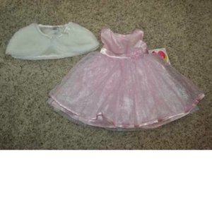 *Holiday Dress & Shrug sz 3T Pink White Sparkle Formal Capelet 2 Pc Set Girls