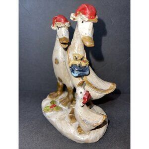 Holiday Duck Family Christmas Figurine Santa Hat Resin Rustic Tii Collections.