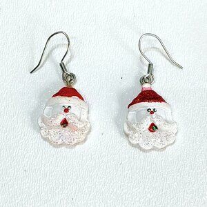 Holiday Earrings & A Santa Claus Pendant Set Red & Green Vintage Jingle Bells