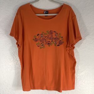 Holiday Edition 100% Cotton Orange Happy Halloween Pumpkin Short Sleeve 2X