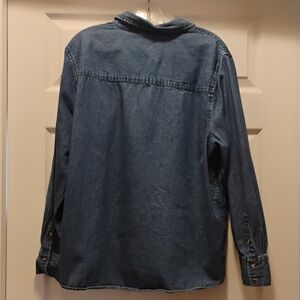 Holiday Editions Denim Shirt with Floral Embroidery Festive Celebration Size XL