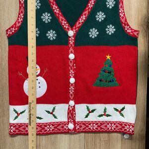 Holiday Editions Snowman Christmas Tree Festive Red & Green Sweater Vest Size Medium (NWOT)