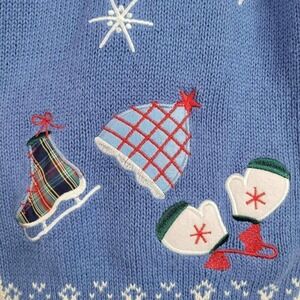 Holiday Editions Sweater Vest Women's Christmas Grandma Size L Blue White Cotton